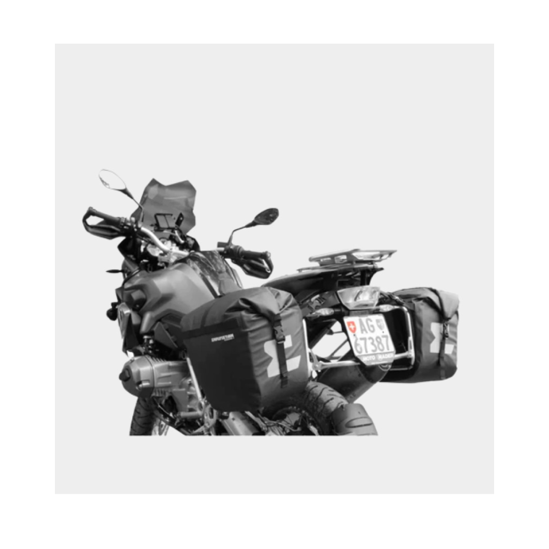 यदि आप पन्नियर फ्रेम का उपयोग करते हैं, तो मानसून उन बाइक्स में भी फिट होगा जिनके किनारों पर बहुत छोटे या कोई मडगार्ड नहीं हैं, जैसे कि BMW F 800 GS। एक सुरक्षित माउंट के लिए, हम एक किट प्रदान करते हैं, जिसमें दो अतिरिक्त ROKstraps होते हैं।