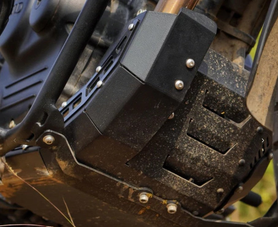 Protect your Guerrilla 450’s engine and exhaust with Auto Engina’s robust aluminium bash plate, designed for light trail use. Offering superior protection and a sleek, modern aesthetic, this bash plate is perfect for riders who venture off-road, providing durable coverage for your engine and exhaust on rugged terrain.