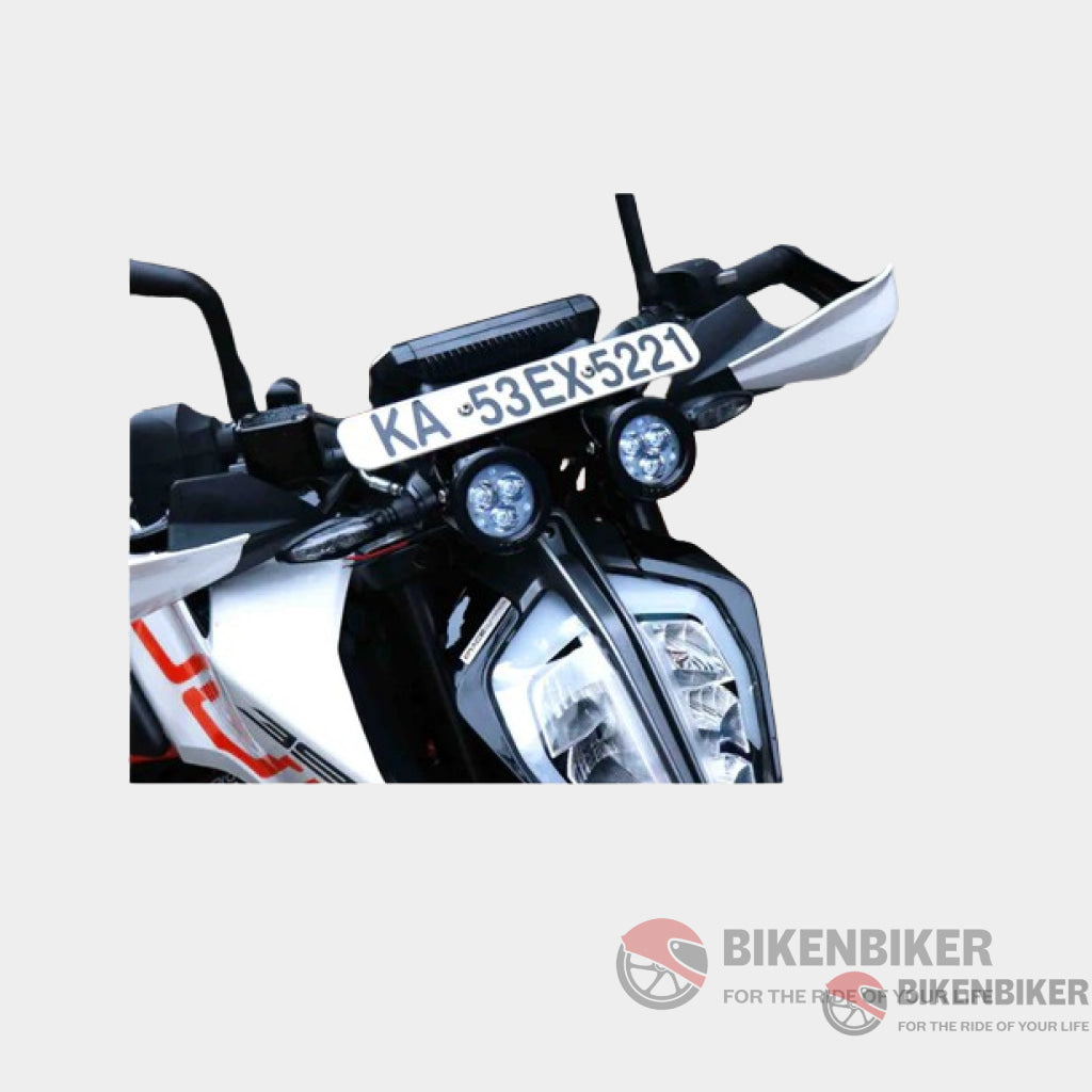 This Maddog Light Mounts allows fitment of any LED Lights to KTM Duke 390. These light mounts comes with a unique two point mounting system and avoids metal to metal contact and helps the clamps to securely grip on KTM DUKE 390 and Laser cut precision for super versatile and robust light mounting solution for offroading.